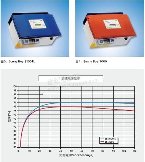 图5:外观相同,内部电路不同:变压器型和无变压器型两种Sunny Boy效率特性。